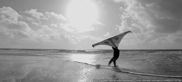 Wing surfing with landboards on the beach — a black-and-white video from France. Thierry and Dom are really going for...